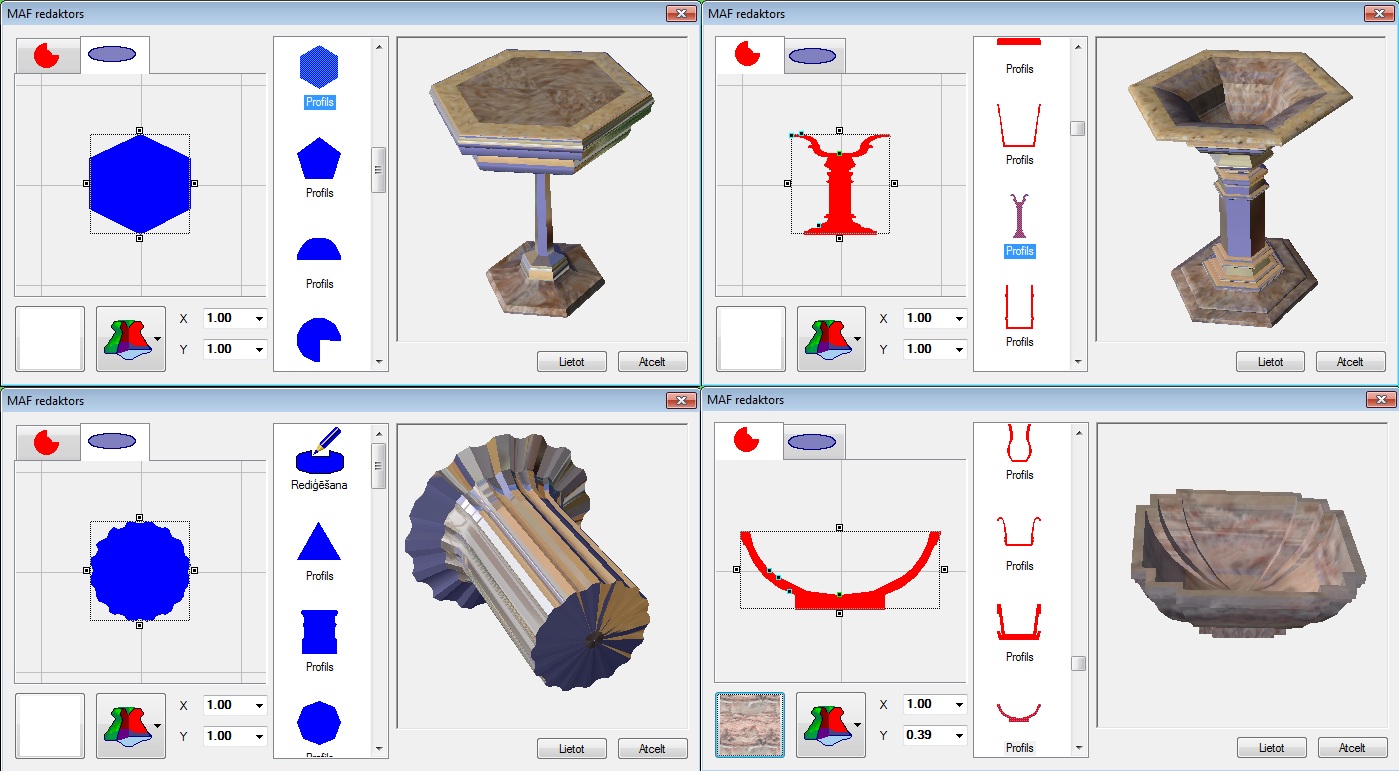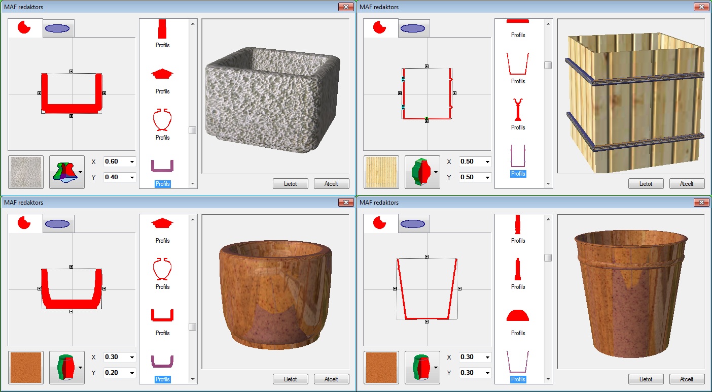 Lai cik plašas arī būtu programmas 3dimensiju objektu bibliotēkas, to spēkos nav aptvert visu konstrukciju daudzveidību, kas tiek pielietotas ainavu projektēšanā. Savu ekskluzīvo modeļu radīšanai ir paredzēts vienkāršs un ērts Mazo Arhitektūras Formu redaktors - 3dimensiju objektu projektētājs, kas neprasa lietotājam īpašas darba prasmes. Konstruēšanas process nepārtraukti attēlojas apskates logā.