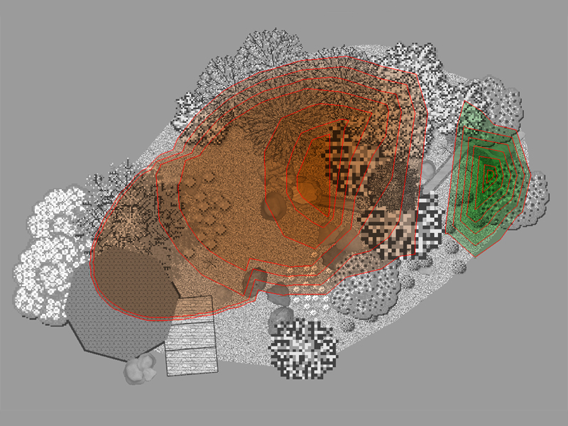 Paredzēts ainavu modelēšanai. Iespējams pacelt, nolaist, mainīt plāna apgabala slīpumu.