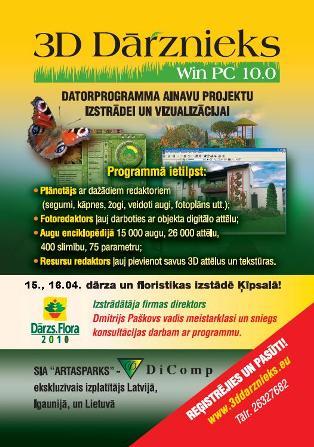 14. Starptautiskās dārza un floristikas izstādes DĀRZS.FLORA 2010, kas no 15. līdz 18. aprīlim norisināsies izstāžu centrā Ķīpsalā , ietvaros, Krievijas kompānijas DiComp direktors Dmitrijs Paškovs vadīs meistarklases dārzu dizaina datorprogrammas 3D Dārznieks lietošanā. Meistarklases norisināsies 15. un 16. aprīlī.